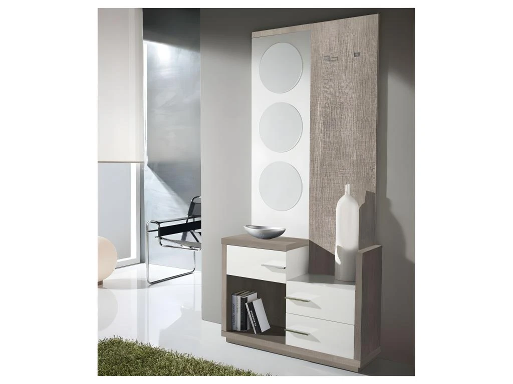 Magnifique meuble d’entrée couleur Chêne clair et blanc laqué moderne idéal pour votre entrée