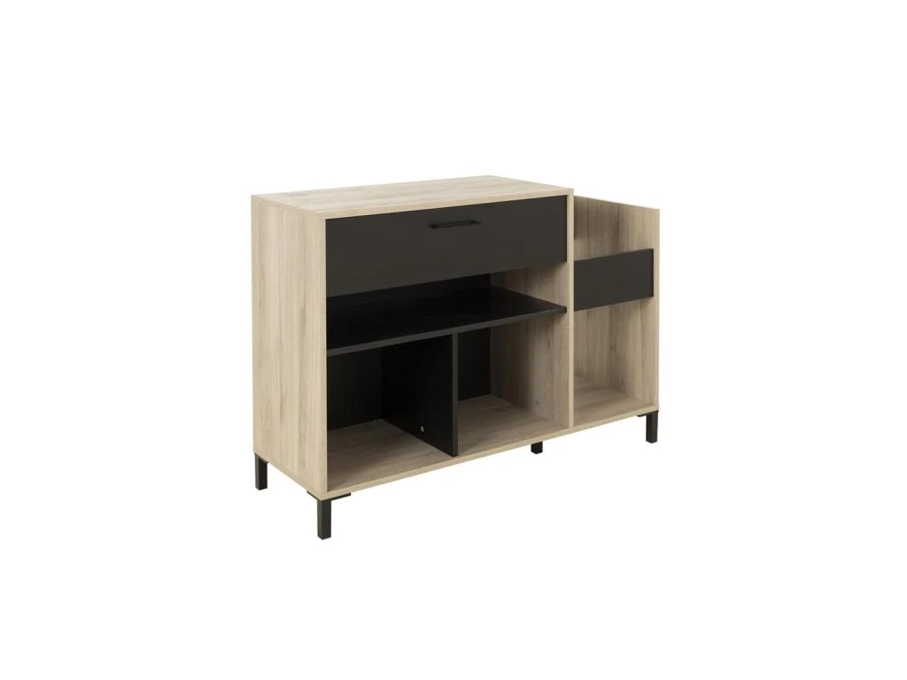 Dans un salon, une chambre, un bureau ou même une salle à manger ce meuble de complément offre de nombreux espaces de rangement qui combinent surfaces de pose et tiroir.
