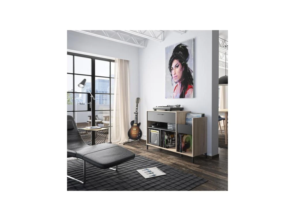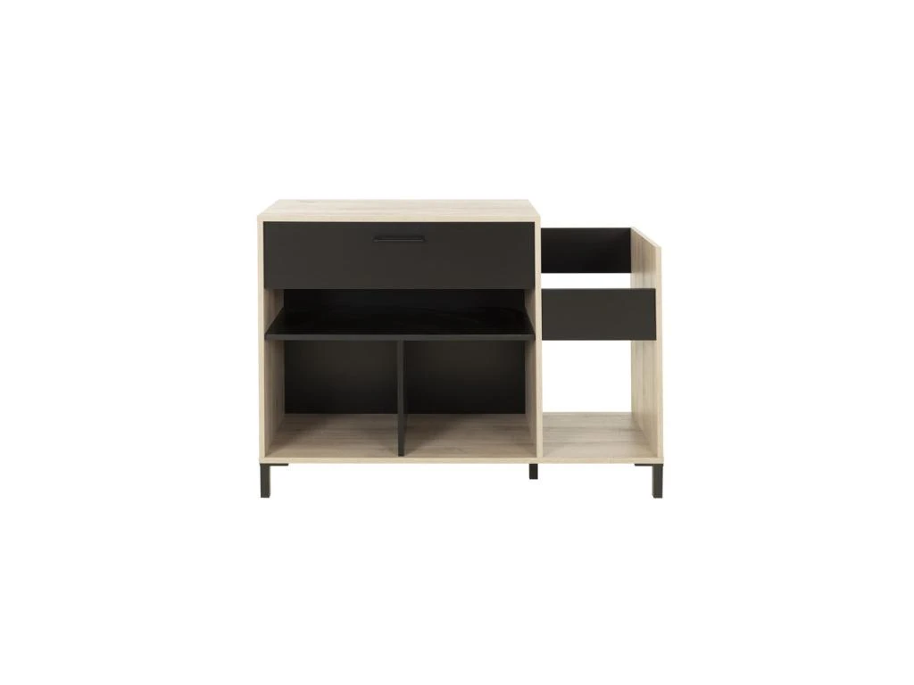 Vous apprécierez le mariage du revêtement Chêne clair au veinage plus vrai que nature et des éléments teinte noire qui promettent un rendu contemporain au goût du jour, le design original fait de ce meuble de rangement un atout dans toutes les pièces de la maison.