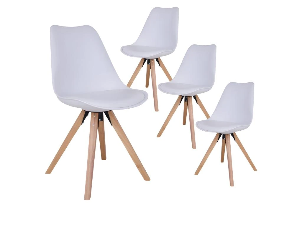 Lot de 4 Chaises Blanches et Piétement Hévéa de la gamme Nibben.
