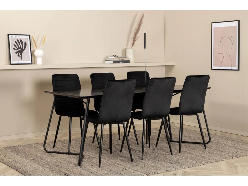 DippØ115BLBL Ensemble Table, Table Noir Et 4 Tvist Chaises Similicuir PU Noir.