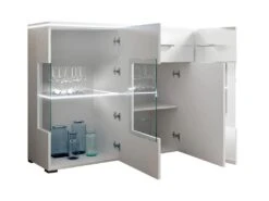 Buffet 2 Portes Et 3 Tiroirs Collection RAMOS. Éclairage LED Intégré. Coloris Noir Brillant.