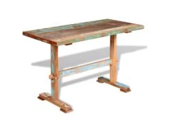 Table De Salon Salle à Manger Dîner Design Sur Pied Bois De Récupération Massif 120 Cm 0902272