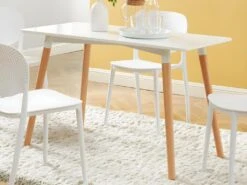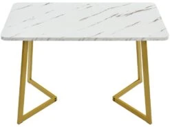 Table Ă Manger 4 Couverts En CĂ©ramique Et MDF – Effet Marbre Blanc Et Taupe LaquĂ© – GOULBURN