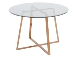 Table Ă Manger 4 Couverts En Verre TrempĂ© Et Acier Inoxydable – Transparent Et CuivrĂ© – EFELIA
