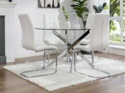 Table Ă Manger Ronde 4 Couverts En Verre TrempĂ© Et MĂ©tal ChromĂ© – Transparent – COSIMA