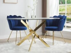 Table Ă Manger Ronde 4 Couverts En Verre TrempĂ© Et MĂ©tal DorĂ© – Transparent – COSIMA