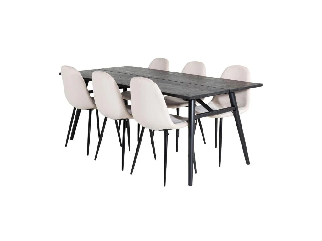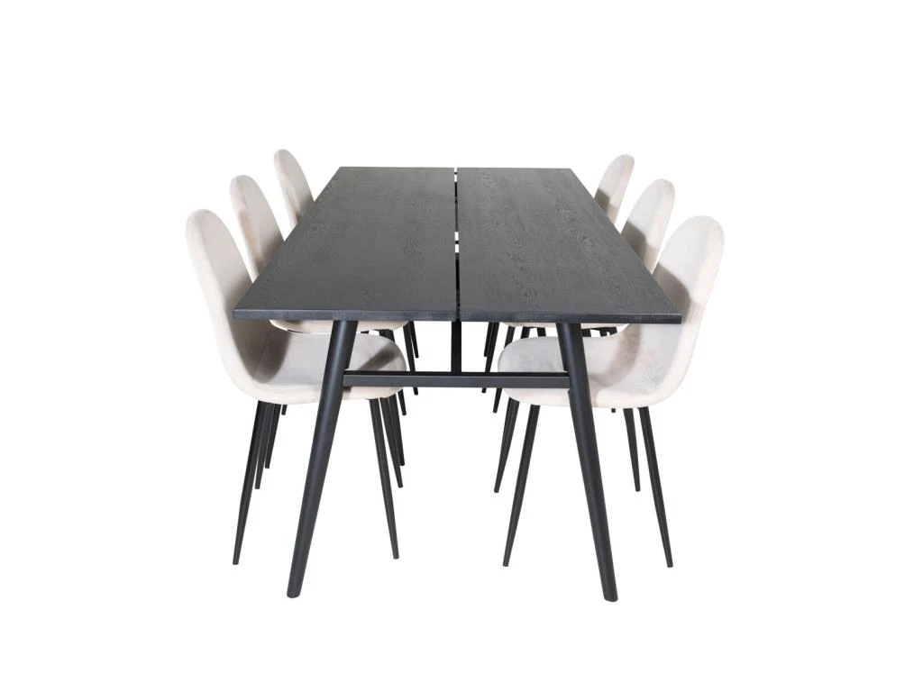 PiazzaBLBL Ensemble Table, Table Noir Et 6 Pippi Chaises Velours Noir.