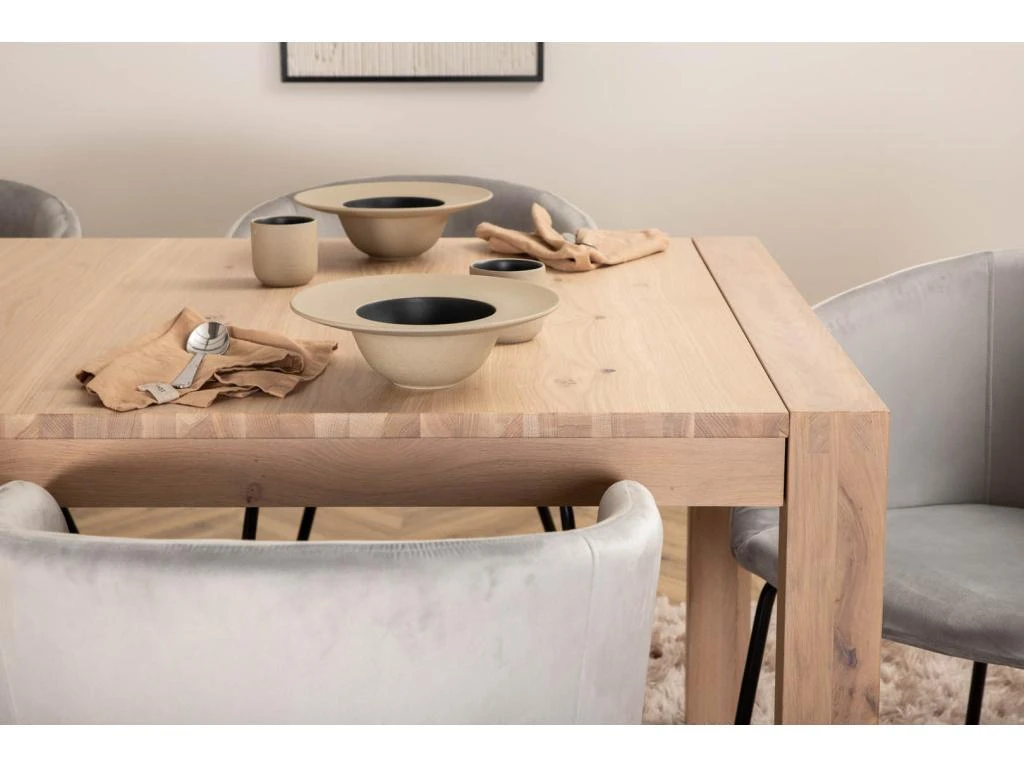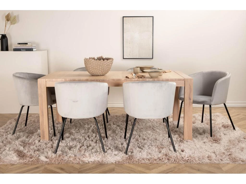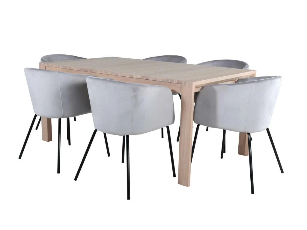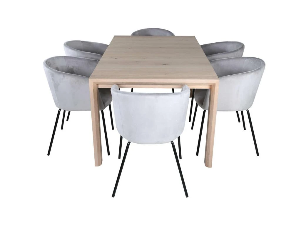 Jepara Ensemble Table, Table Teck Et 6 Velvet Deluxe Chaises Grisclair, Noir.
