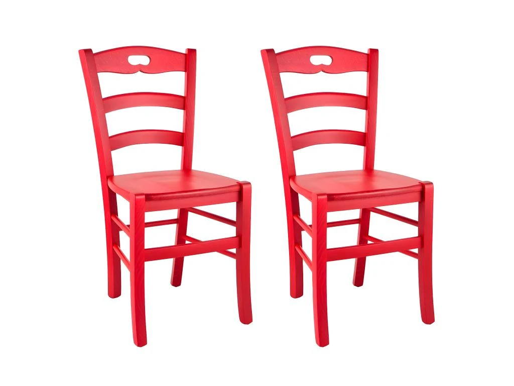 Lot de 2 Chaises Laquées Rouge et Assises en Bois de la gamme Suzy.