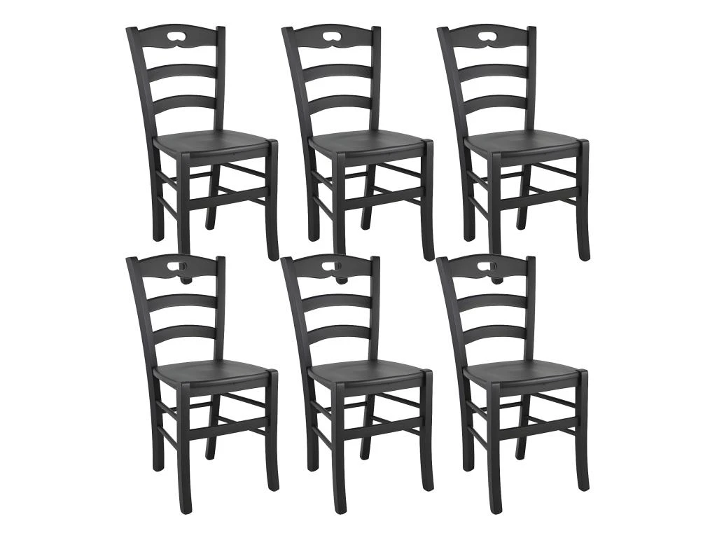 Lot de 6 Chaises Laquées Noir et Assises en Bois de la gamme Suzy.