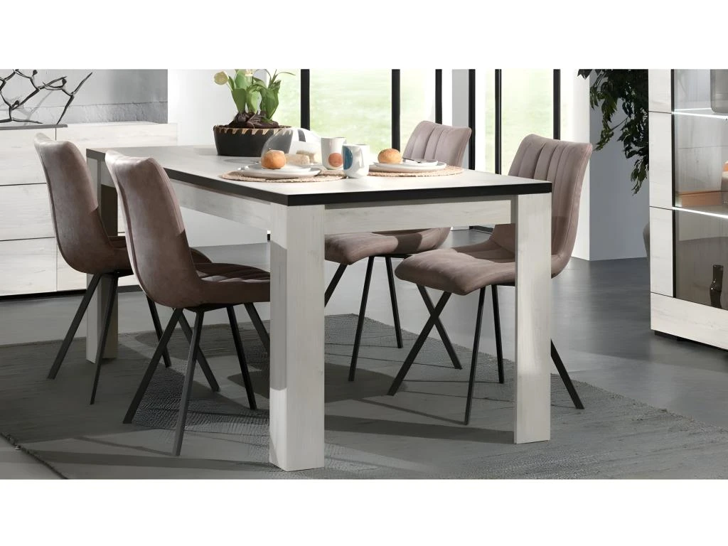 Table de salle à manger de longueur 160 cm collection Elba. Cette table est assortie aux autres meubles de la collection Elba. Convient idéalement pour 6 convives. Fabrication européenne. A monter soi même. Dimensions : L160 x l90 x H78 cm. Poids : 36 kg. Matière : Panneaux de particules épaisseur 16mm. Coloris : chêne blanchi.