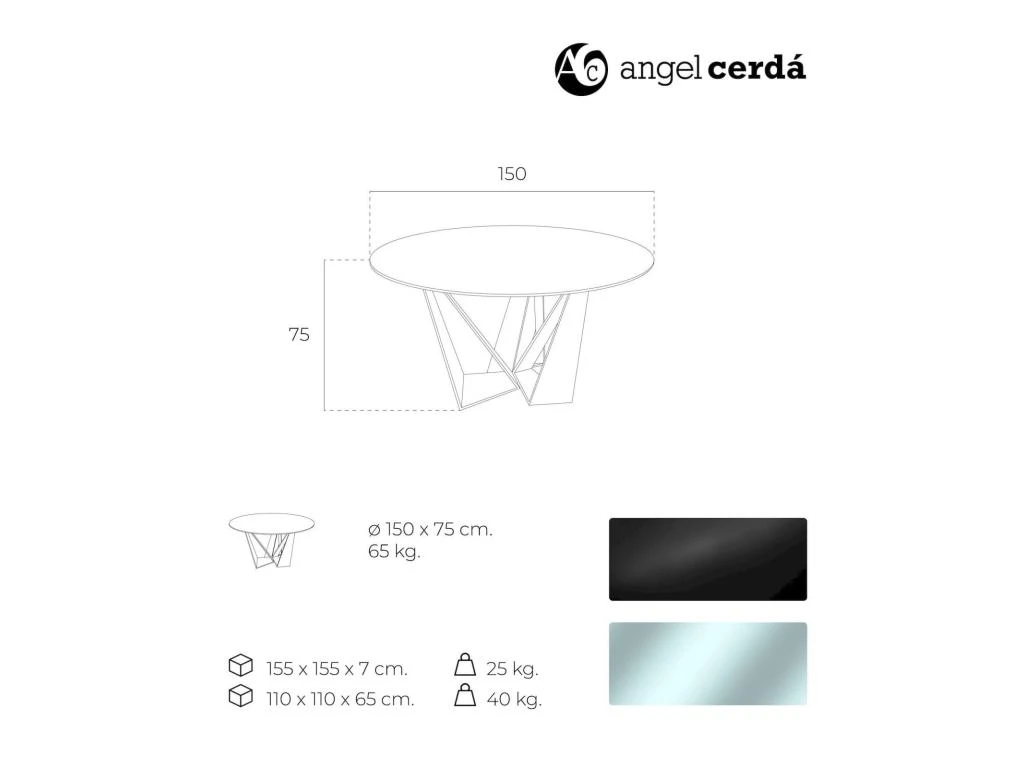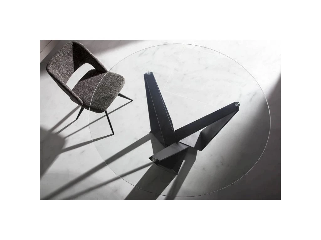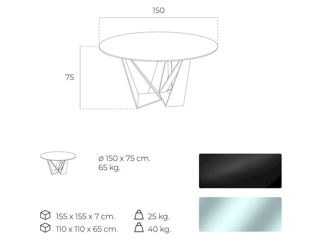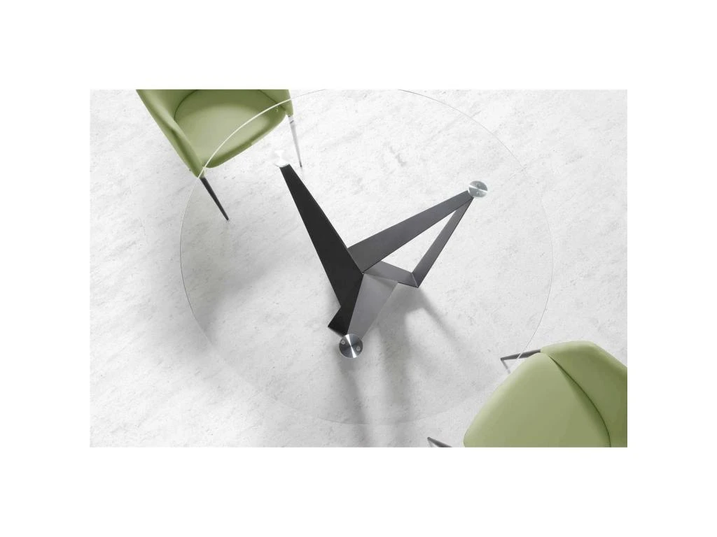 Matière : couvercle : verre transparent de 12 mm avec procédé de trempe thermique à 635 degrés et bords polis, jambe : acier inoxydable laqué en noir mat ,