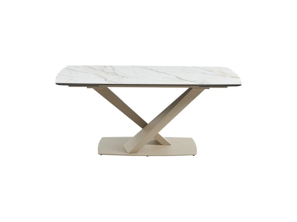 La table à manger MALATA vous propose un alliage de matières très résistant composé de céramique et verre trempé pour son plateau et de métal pour son piètement. Son design est tendance grâce à sa forme élégante et son coloris effet marbre.