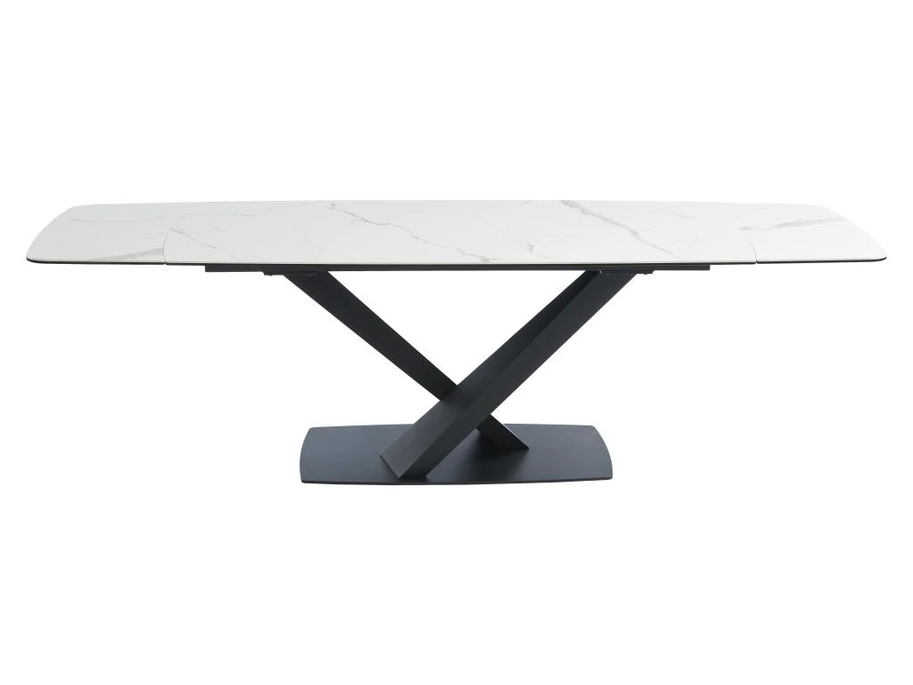 La table à manger MALATA vous propose un alliage de matières très résistant composé de céramique et verre trempé pour son plateau et de métal pour son piètement. Son design est tendance grâce à sa forme élégante et son coloris effet marbre.