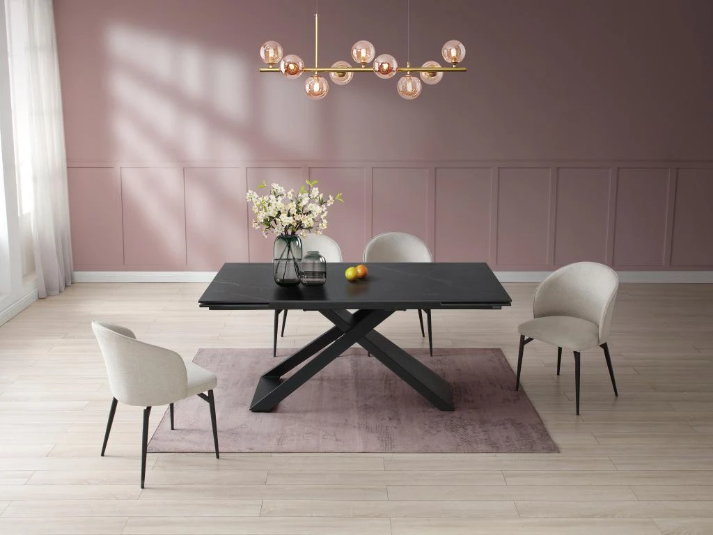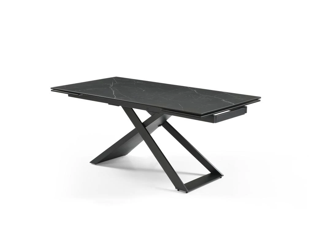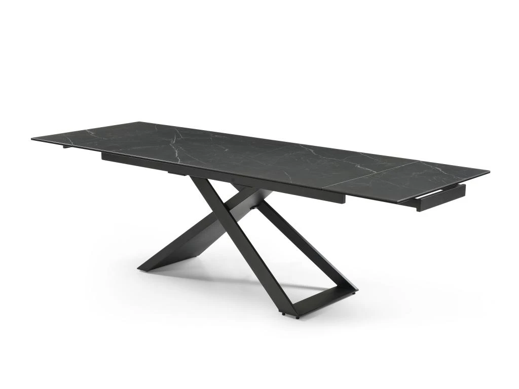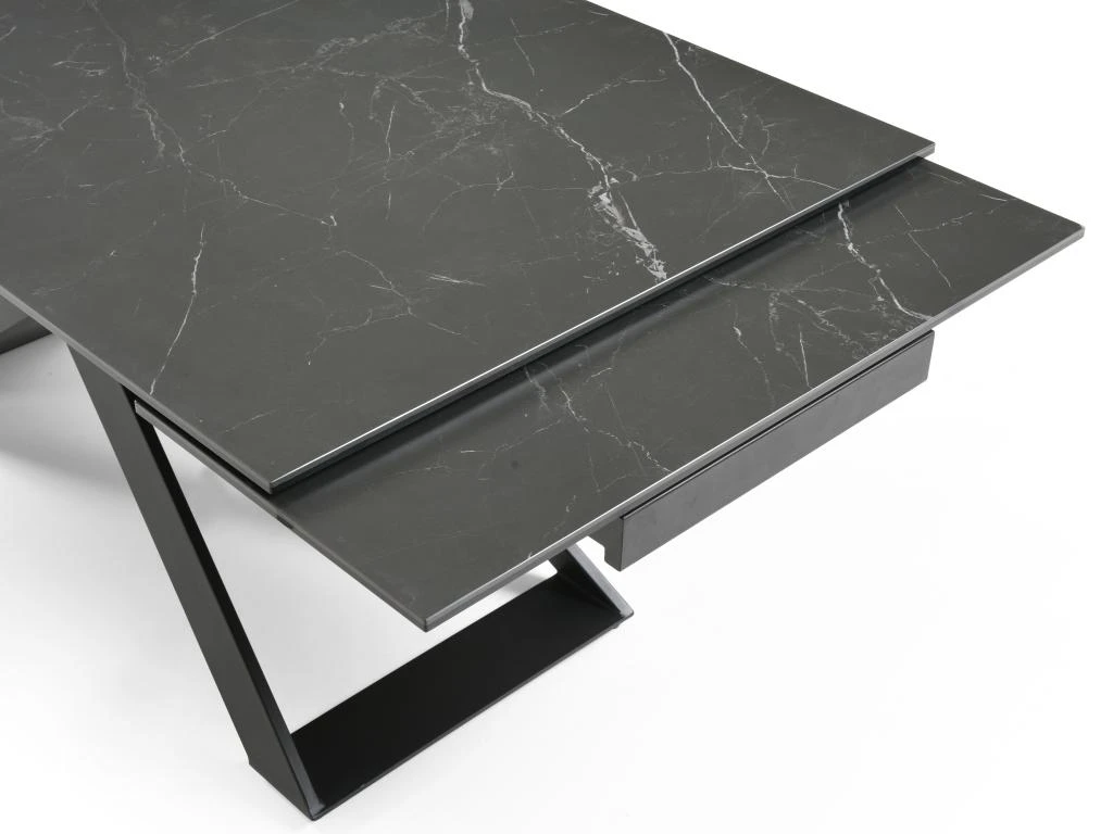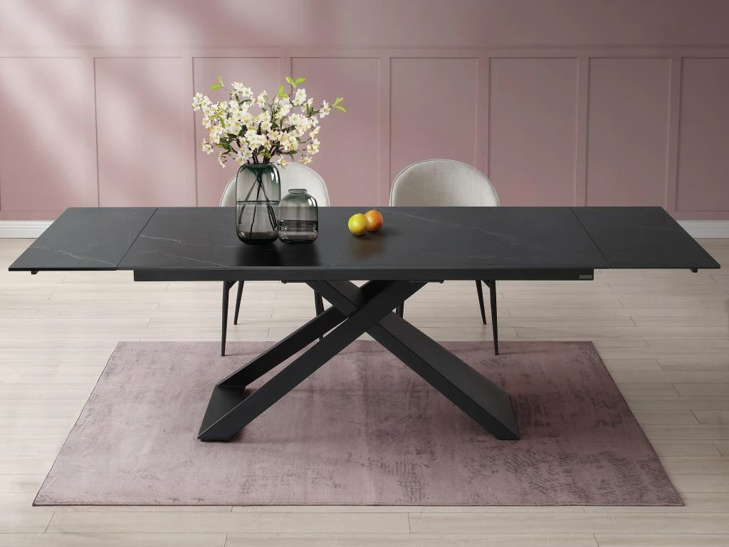 La table à manger extensible XERENA est une table en céramique et verre trempé reposant sur un élégant piètement en métal. Ces matières font d’elle une table très résistante. Grâce à son système à 2 allonges en bout de table vous pourrez facilement organiser des repas conviviaux.