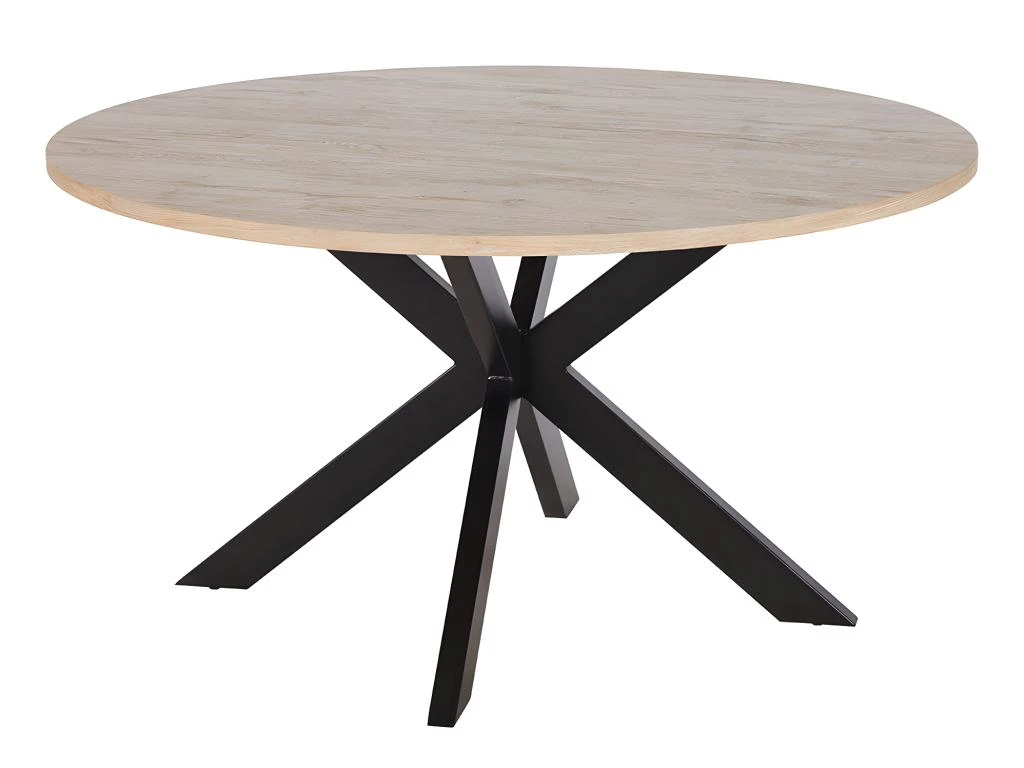 Idéale pour accueillir vos amis pour un moment convivial, la table TILKI vous offre un beau plateau solide en MDF et de couleur chêne. Il est soutenu par quatre pieds croisés en métal noir de finition matte.