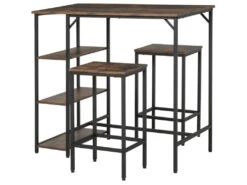 Ensemble Table De Bar 3 étagères 2 Tabourets Style Industriel Métal Noir Aspect Vieux Bois Veinage