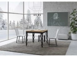 Table Extensible Portefeuille 90×90/180 Cm Karamay Libra Chêne Nature Cadre Anthracite