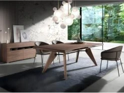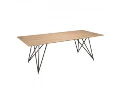MADISON – Table à Manger Rectangulaire 220x100cm Bois Chêne Pieds épingles Croisés Métal Noir