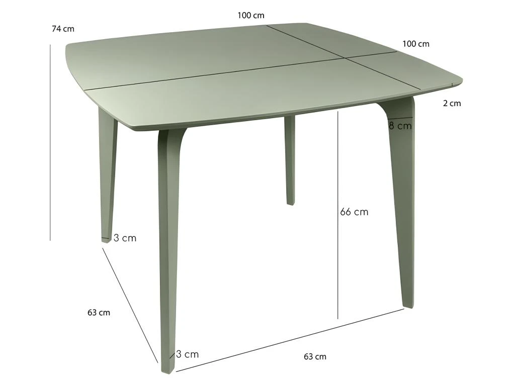 - DIMENSIONS GENERALES APPROXIMATIVES : Longueur 100 cm x Hauteur 74 cm x Profondeur 100 cm / Hauteur sous plateau 66 cm.