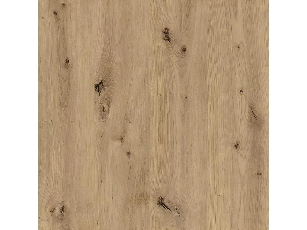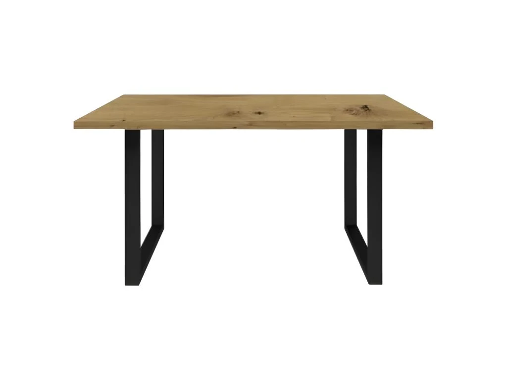 - COMPOSITION : Plateau en panneaux de particules avec papier décor chêne artisan 38 mm. Piètement luge en métal noir.