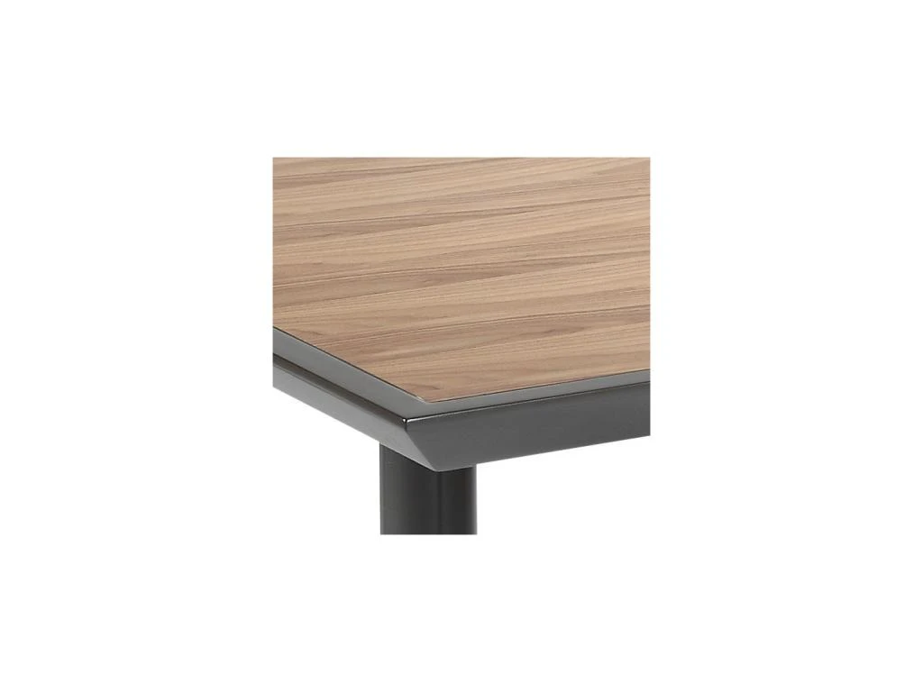 Ce plateau est mis en valeur par l’encadrement métal laqué gris brillant qui procure une mise en relief de la chaleur de ce bois semi-précieux à l’agrément visuel réellement unique.