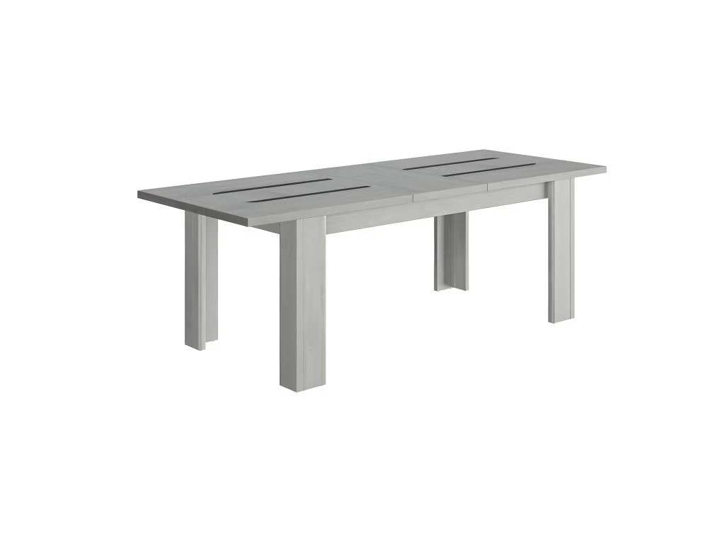 Quel que soit le code couleur de votre pièce cette table de salle à manger saura s’y intégrer sans faute de goût, elle permettra de recevoir confortablement 8 convives après la mise en place de l’allonge centrale intégrée.