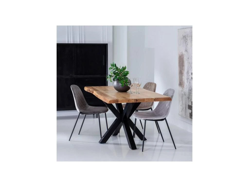 Le très grand potentiel décoratif ce cette table de salle à manger vient du mariage de matériaux à la très belle qualité perçue et des contours irréguliers de son plateau épais, elle deviendra un point clef d’une déco tendance mobilier Industriel.