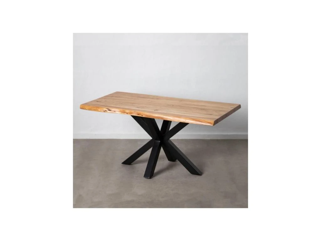 Réalisez une salle à manger contemporaine avec cette table de repas rectangulaire mettent en avant un spectaculaire plateau aux contours irréguliers fabriqué en bois d’Acacia teinte naturelle.