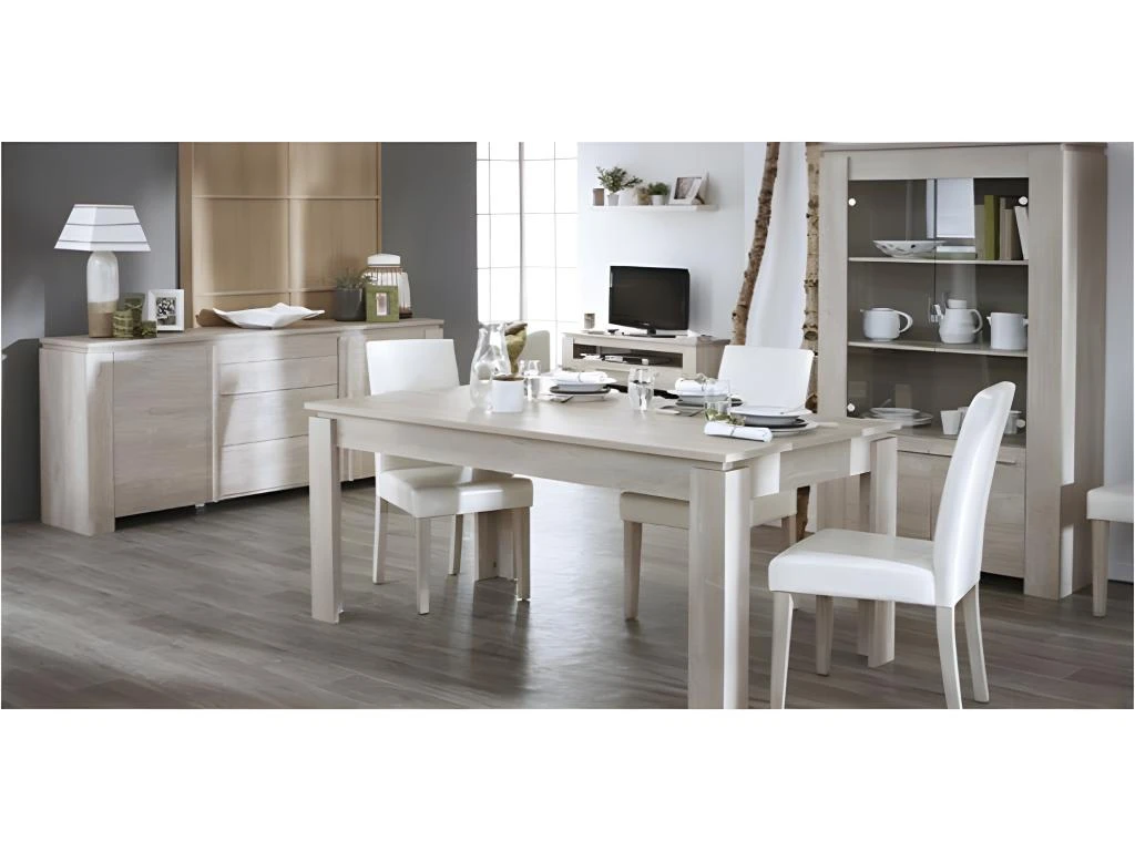 Cette surperbe table s’accordera parfaitement à une salle à manger moderne ! Meuble en panneaux de particules revêtu d’un décor imitation chêne clair -Dimensions de la table : -Largeur : 1.7 m-Profondeur : 90 cm env-Hauteur : 77 cm env