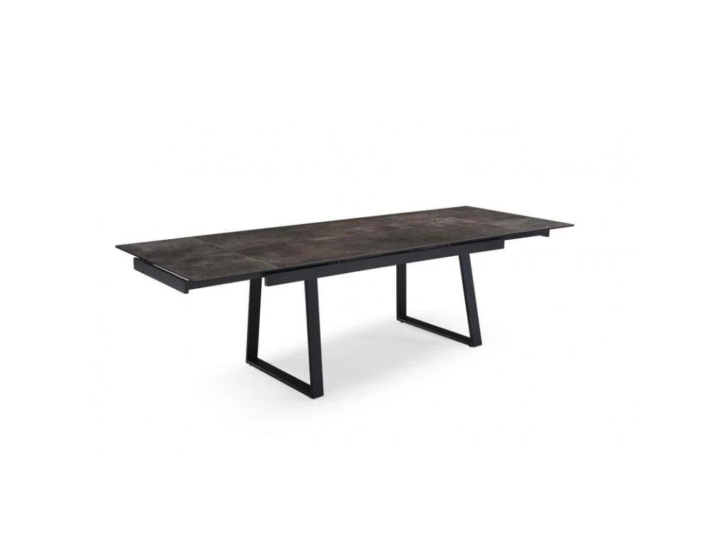 La table personnalisée adaptée à vos envies ! Son plateau en céramique Espagnole 3mm gris vieilli est robuste et original. Attablez jusqu’à 10 personnes grâce à ses 2 rallonges intégrées de 40 cm chacune, pratiques, et simple d’utilisation. Elle passe ainsi de 160 à 240 cm. Son plateau en céramique lui confère des qualités remarquables : résistance aux rayures, insensible aux taches diverses, et ne craint pas les différences de températures. Son piétement luge en méta noir vous assure une stabilité et une robustesse sans faille !