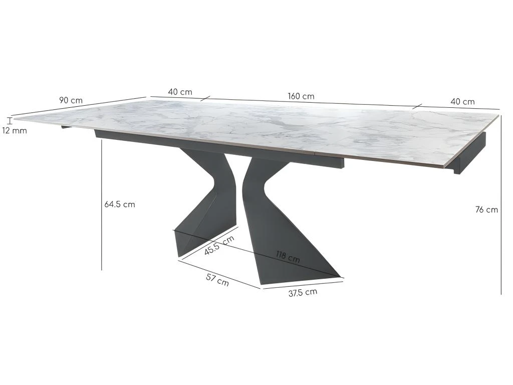 - DIMENSIONS GÉNÉRALES APPROXIMATIVES : Longueur 160 cm (240 cm avec 2 rallonges de 40 cm) x Hauteur 76 cm x Profondeur 90 cm / Hauteur sous plateau 64,5 cm.