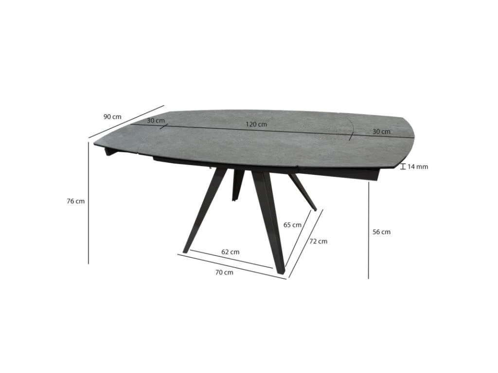 - DIMENSIONS APPROXIMATIVES : longueur 120 cm (180 cm avec rallonges) x hauteur 76 cm x largeur 90 cm / Hauteur sous plateau : 56 cm.