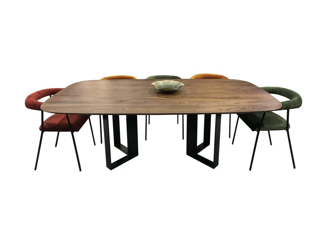 Table de repas en bois massif et métal, fabriquée artisanalement dans nos ateliers en Ille et Vilaine, avec assemblages d’ébénisterie.