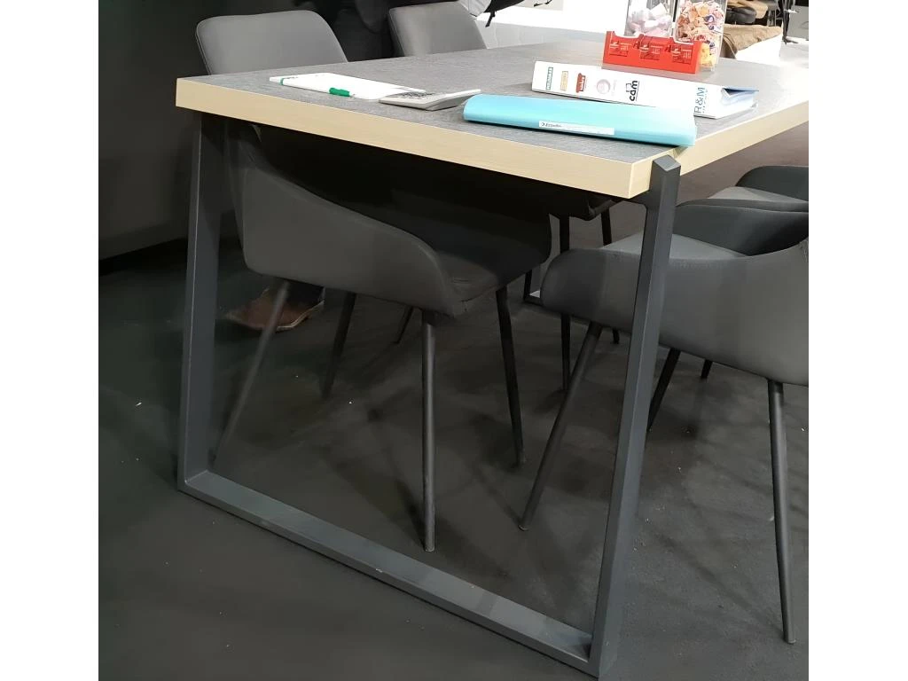 Cette table rectangulaire EMILE ravira votre intérieur avec son plateau effet ciment et ses pieds noirs en U. Imaginez-la dans votre cuisine ou votre salle à manger. Elle peut accueillir facilement quatre personnes. Très stable par ses dimensions : Dim. extérieur.: 160 x 80 x 75 cm – Hauteur pied: 74 cm – largeur pied: 8 cm – Épaisseur plateau: 4,7 cm. Structure : Plateau en MDF et pied en acier.