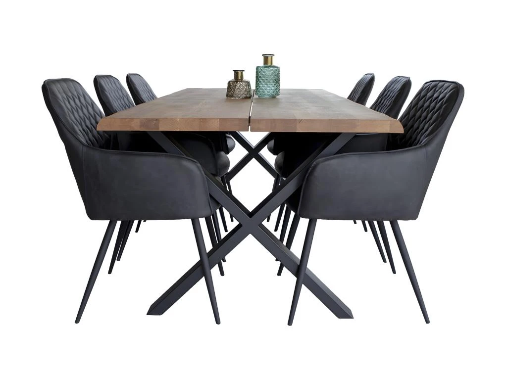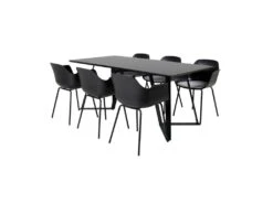 MarinaBLBL Ensemble Table, Table Noir Et 6 Comfort Chaises Noir.