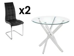 DippØ115BLBL Ensemble Table, Table Noir Et 4 Tvist Chaises Similicuir PU Noir.